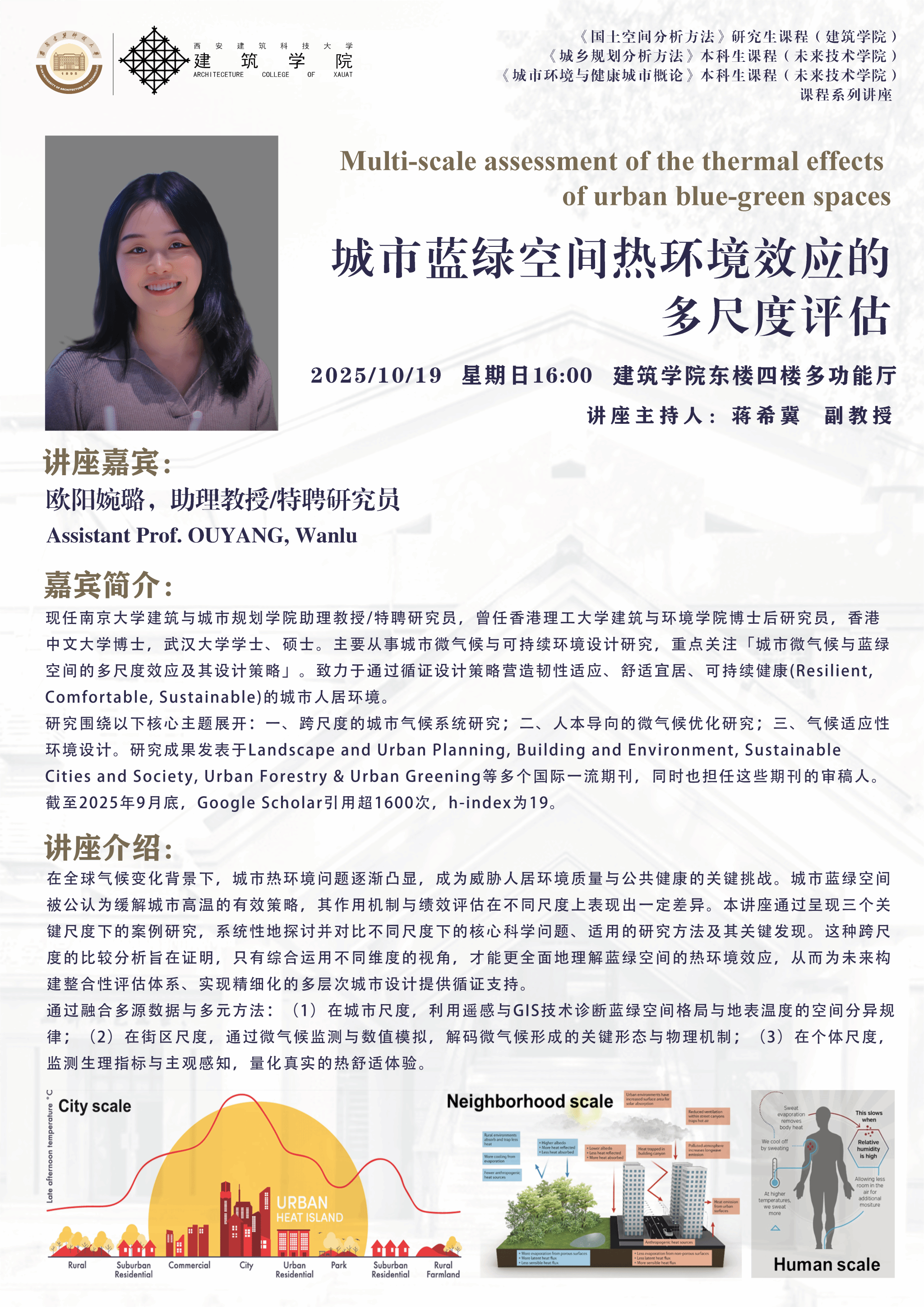 讲座预告【10.19】城市蓝绿空间热环境效应的多尺度评估