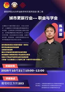为助力建筑学院学生锚定高质量就业方向,深化校企协同创新生态,厚植科研学术根基,激活专业发展动能,建筑学院金秋学术月系列活动第二场于10月21日上午在东阶203成功举办。本次活动特邀江苏省规划设计集团城市更新规划设计院更新一所所长,研究员级高级城市规划师,注册城市规划师陈清鋆带来分享。