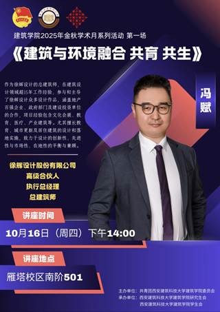 为实现建筑学院学生高质量充分就业目标,加强校企协同合作与交流,进一步厚植科研学术沃土、激活学生科技创新动能。建筑学院金秋学术月首场“建筑与环境融合、共育、共生”活动于10月16日下午在南阶501成功举办。此次学术沙龙邀请了徐辉设计总建筑师冯赋为同学们带来专题学术分享。
