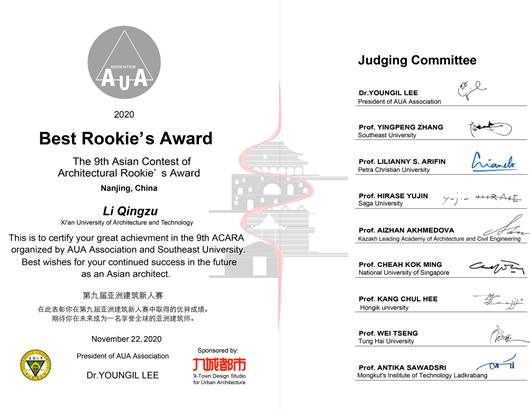 4我校学子李情族(二年级)获“2020亚洲建筑新人赛”一等奖,指导教师:杨乐