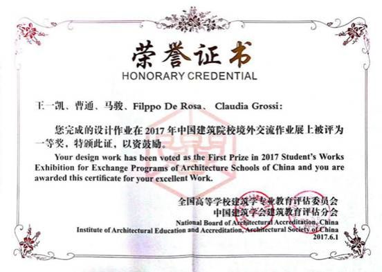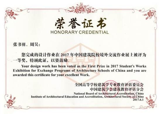 张书羽同学团队、王一凯同学团队均荣获2017年中国建筑院校境外交流学生优秀作业展一等奖。
