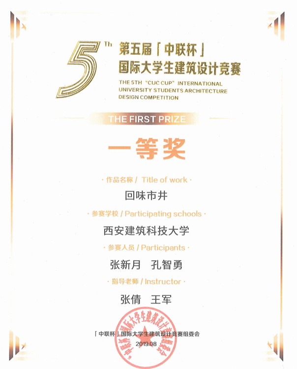 以张倩,王军老师指导的张新月同学团队荣获第五届中联杯国际大学生建筑设计竞赛一等奖。