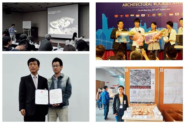 2012年至今,我校先后有80多位学生入围“中国建筑新人赛”TOP100,其中22位入围TOP16,共计8位学子在七届赛事中名列前茅,代表中国参加“亚洲建筑新人赛”,并获得“亚洲建筑新人赛”一等奖1 次、二等奖3 次、优秀奖1 次。我校也是迄今为止代表中国参加“亚洲建筑新人赛”次数最多的国内高校。2020年,杨乐老师指导大二学生李情族的作品“《小客舍设计——檐窗里Underneath The Roof》荣获中国建筑新人赛TOP3,并代表中国参加“2020亚洲建筑新人赛”决赛,最终获得一等奖。