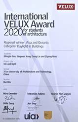 2020年,吴瑞老师指导郭铭杰、牟子雍、刘丛、杨靖文的作品水墨光影《LNK AND LIGHT》获IVA(International VELUX Award)国际威卢克斯建筑学生设计大赛亚洲大洋洲赛区优胜奖。