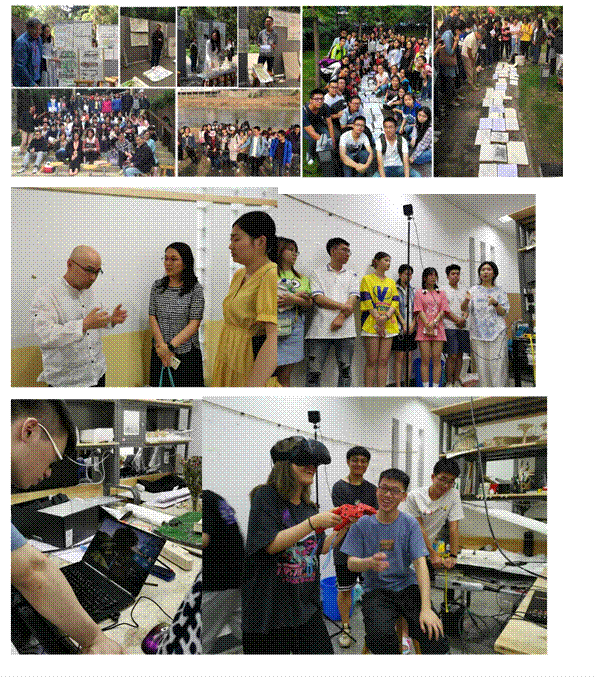 我们有专属的教学实验花园。在学校南门有“南门生境花园”,在东楼北侧有“东楼雨水花园”。天气晴朗,会在校园户外课堂南门生境花园、主楼北入口广场、校史馆入口广场进行设计课讲评。实验课程实验室有学院的AR虚拟现实模拟实验室、物理环境实验室、模型制作实验室。还有实践课程开设的企业工作坊和公园景区实践基地。