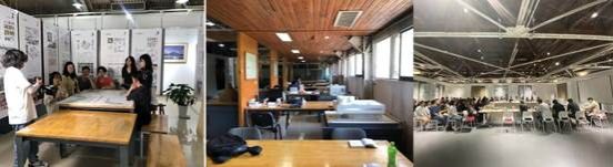 五年本科学习期间,我们的专业都有固定的小班专业设计教室,每个人都有专属的绘图桌和书架,专业教室配有投影仪、白板和网线。此外,还有很多共享空间供师生讨论、交流、答辩、报告、咖啡小憩。