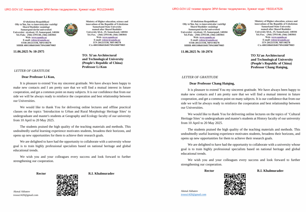 Xi’an University of Architecture and Technology (XAUAT) offered credit courses under the Confucius China Studies Program (CCSP) to students of Uzbekistans Samarkand State University (SamSU), a member of the SRIAATU, from April to July.