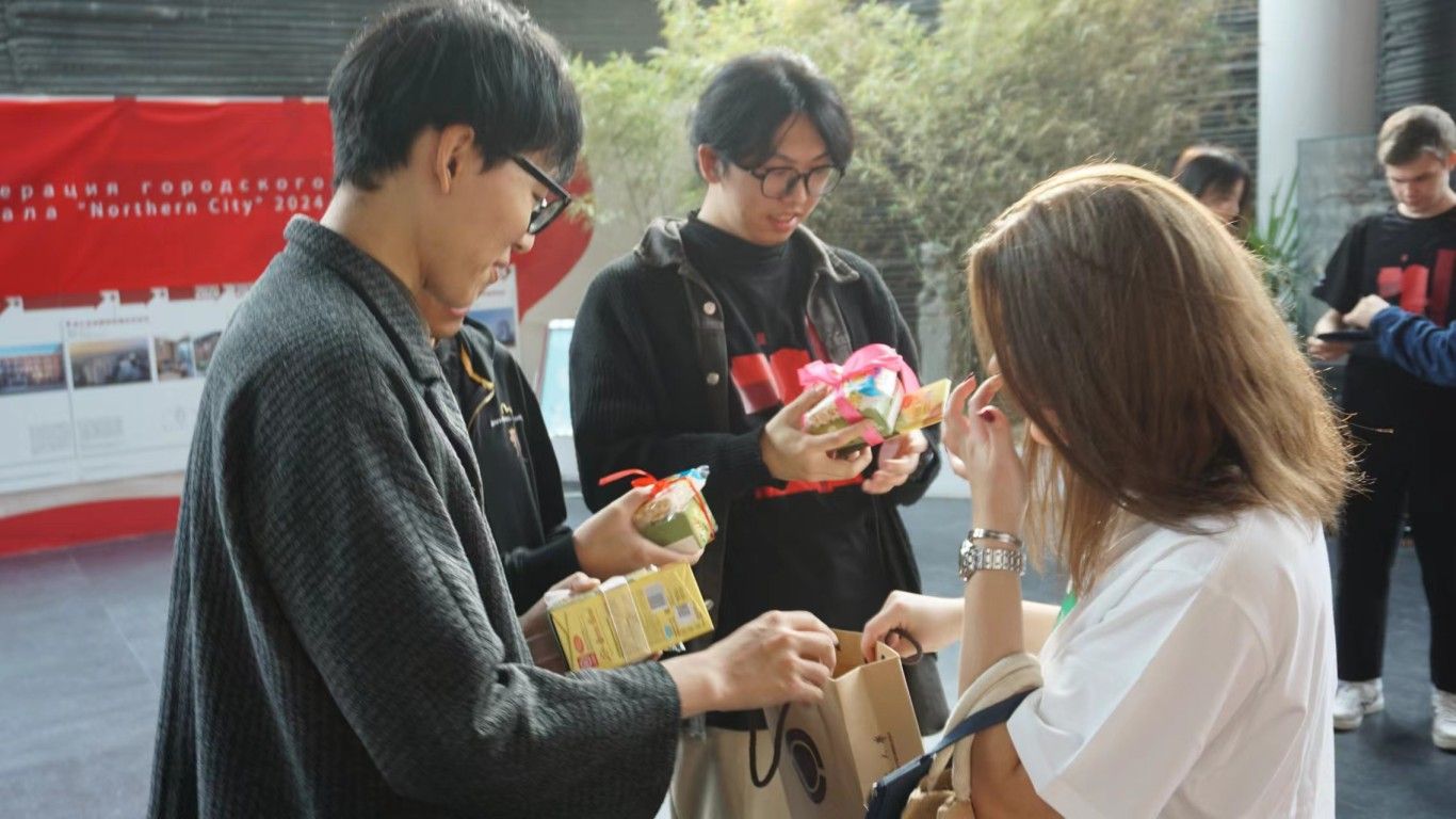 Students from the two universities exchanged gifts and took a group photo, after which all the participants went to the site for investigation.