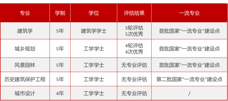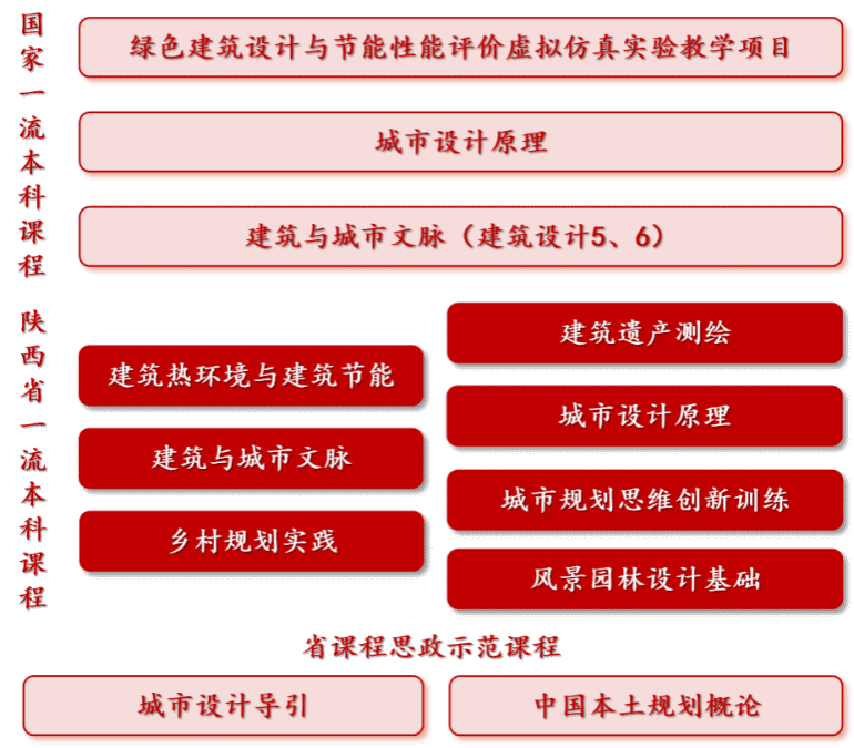 学院设有建筑学、城乡规划、风景园林、历史建筑保护工程、城市设计5个本科专业,拥有建筑学、城乡规划学2个一级学科博士授权点及一级学科博士后科研流动站,国家首批风景园林博士专业学位授权点,是我国西北地区唯一具有建筑学、城乡规划和风景园林学士、硕士、博士和博士后全系列人才培养资格的单位。2016年在全国第四轮一级学科评估中,建筑学、城乡规划学和风景园林学均排名B+,2021年建筑学在全国第五轮一级学科评估中实现重要突破。